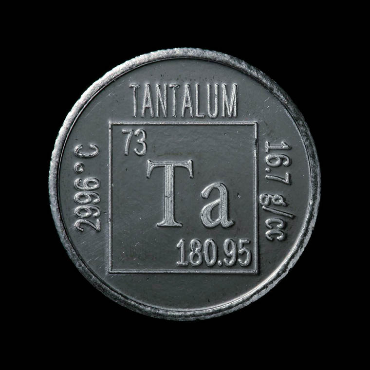 Тантал (Ta) – редкоземельный, коррозионностойкий, голубовато-серый металл. Имеет высокие характеристики пластичности и твердости. Обладает высокой температурой плавления — 3017 °C. Тантал почти в 4 раза плотнее титана и не становится хрупким даже при температуре жидкого азота (−196 °C). Обладает уникальными диэлектрическими свойствами и биосовместимостью. Применяется в металлургии для легирования жаропрочных и нержавеющих сталей. Используется в ядерной энергетике для создания теплообменников. В электронике для производства миниатюрных конденсаторов и вакуумных приборов. В ювелирной отрасли становятся все более популярными обручальные кольца из тантала.